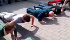 實拍老兵和小伙比賽做俯臥撐 引眾人圍觀歡呼
