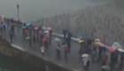 游客打傘看雪情 西湖斷橋變“傘橋”
