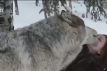 美國女孩與狼親密互動
