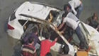 實拍眾人施救墜河轎車