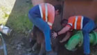 工作人員解救被困小象