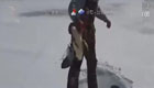 男子冰上鉆孔釣魚 不料釣起水鳥
