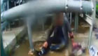 男子懷疑得了狂犬病鉆進鐵柵欄