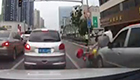 實拍女子車流中橫穿被撞飛