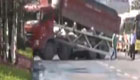 大貨車翻斗忘放下 交通監控被撞下