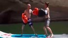 牛人滑板上打拳擊妙趣橫生