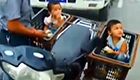 摩托車掛水果筐裝幼童
