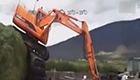 實拍牛人開挖掘機從高坡上“跳”下