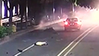 監拍男子騎摩托被逆行轎車撞飛
