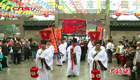 【解說】據介紹,本次展覽除了展出慈禧的衣服、書畫、印璽外,還包括陀羅尼經被、鋪絨繡荷花褥子、香寶、香冊等神秘的慈禧陵地宮遺物,而首次展出的陀羅尼經被由捻金線織造而成,約三米見方,織有25000個漢字,工藝精湛,可謂價值連城。