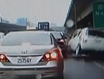 臺北市的一段繁忙公路上,一輛白色轎車為了躲避警察高速行駛在路間,卻卡在了公路上。