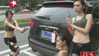 美女“槍擊”違法亂停車輛