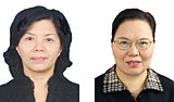 繆水娟(左),全國人大代表杭州高級中學校長、黨總支書記。 程惠芳,浙江工業大學經貿管理學院黨委委員、教授、博士生導師