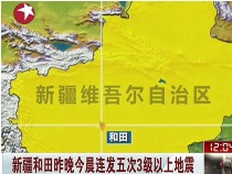據新疆地震局臺網初步測定,2月20日21時52分、21時59分、22時18分、22時20分、21日00時01分(北京時間),在新疆和田縣先后發生4.5……