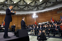 布什 任期之內4次訪問中國。2008年8月8日出席北京奧運開幕式,成為首位在任內參加在他國舉辦的奧運開幕式的美國總統。 |