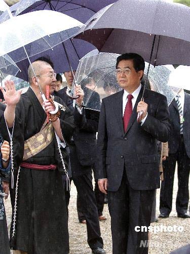 圖:胡錦濤冒雨參觀日本法隆寺