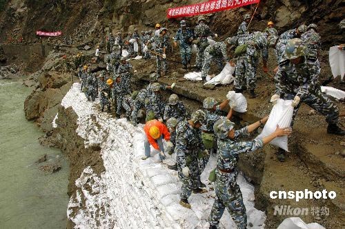 圖:鐵軍官兵搬遷帳篷準備重建新映秀