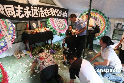 都江堰民眾自發悼念抗震救災烈士武文斌