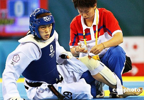 被教練背走后六小時,左腿膝蓋受傷的中華臺北跆拳道選手蘇麗文,又出現在57公斤級比賽現場…