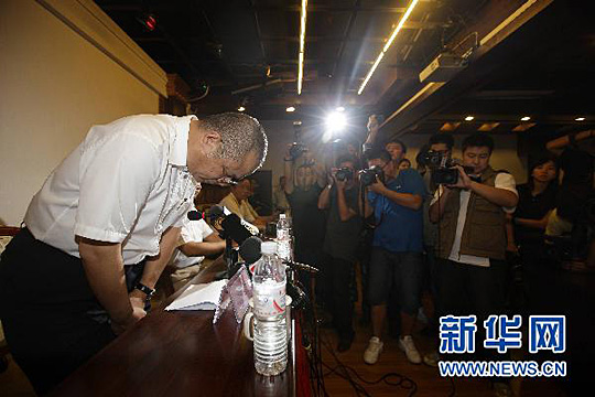圖:河南航空公司監事會主席鞠躬致歉