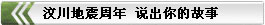 1年過(guò)去了,相比災(zāi)難,更讓我們銘記的是災(zāi)難面前中國(guó)人的堅(jiān)強(qiáng)、勇氣和愛(ài)。請(qǐng)寫(xiě)下您和汶川地震的故事,傳遞“萬(wàn)眾一心、眾志成城,不畏艱險(xiǎn)、百折不撓,以人為本、尊重科學(xué)”的抗震精神……