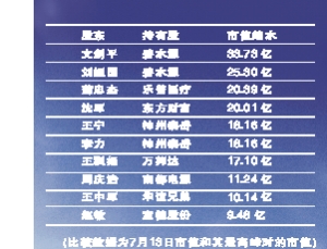 總市值縮水,股東身家自然會隨之走低。統計數據顯示。截至7月13日,創業板自然人股東身家共計縮水逾600億元,其中約80%的自然人股東市值減少,近百人市值損失過億。