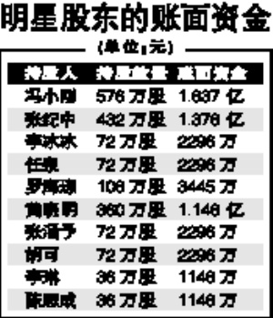 據了解,華誼最早的原始股價是0.53元,李冰冰、任泉等一批最早的股東就是以該價格買進的。總的來說,明星股東持股價最低平均每股不到1元,黃曉明等加入較晚,平均每股購入價為3元已經算是最高。而各類明星的購買數量則是以“萬”為單位計算,如李冰冰、任泉起初就購進36萬股,而馮小剛則用151.48萬元購得288萬股。而在今年年初,華誼兄弟還公布了一套分紅方案:每10股轉增10股并派現3元(含稅)。于是公司明星股東手中持有的股票全部翻倍,“一哥”黃曉明持股數由180萬股變成360萬股,他在紅利方面還有54萬元進賬。“一姐”李冰冰持股數則由36萬股增加至72萬股,現金紅利10.8萬元。馮小剛的持股數更是翻到了576萬股,另外還拿到86.4萬元的現金紅利。