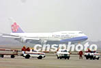 載有春節(jié)返鄉(xiāng)探親臺(tái)商及其眷屬"華航"包機(jī)飛離浦東機(jī)場(chǎng)