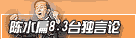 選戰經費超出“法定限額” 謝長廷被罰款10萬 (2月20日09:01)港報評論:從劉泰英被捕看李登輝與陳水扁的關系 (2月19日16:37)臺政界人士:打破"開而不放"加速開放大陸人才赴臺 (2月19日14:46)臺最新民調:“扁呂配”已成支持度最低組合 (2月19日10:14)港報:李登輝"戒急用忍"才是阻礙臺經濟最大障礙 (2月18日15:11)臺灣所謂“護照正名”封面加注“TAIWAN”定案 (2月18日10:14)李登輝“批”陳水扁:“戒急用忍”做的不確實 (2月17日14:20)港報:陳水扁堅持"一邊一國"加緊推行"漸進式臺獨" (2月17日11:22)去年"度假外交"受阻"耿耿于懷" 陳水扁又圖"出訪" (2月17日09:43)宋楚瑜:為國親合作納入新觀念、作法與改革理想 (2月16日21:17)臺灣支持率民調顯示:“連宋配”勝“陳呂配” (2月16日10:32)馮滬祥在美設律師團對李登輝老婆運鈔案越洋興訟 (2月14日14:27)國親兩黨籌組"政黨聯盟"推出3項聲明6項合作計劃 (2月14日12:48)新瑞都案:檢方起訴蘇惠珍余陳月瑛求刑3至4年 (2月14日12:03)連宋情人節相會:不宣布"搭配"內容 發表聲明(圖) (2月14日11:09)臺灣最新民調顯示:連戰支持度超過陳水扁 (2月14日10:49)臺當局:大陸為"未來敵人"反對兩岸"直航"對飛 (2月14日09:09)臺媒體:“連宋會”今日登場 將敲定“國正親副” (2月14日08:48)“連宋配”國親將簽署“政黨聯盟機制”備忘錄 (2月13日14:11)美中情局局長警告:臺若鼓吹"臺獨"兩岸局勢將緊張 (2月13日11:03)陳水扁“生財有道”被曝光 去年收入暴增3200多萬 (2月13日09:19)劉泰英涉嫌挪用國民黨資金42億 造成37億虧損 (2月13日08:31)臺報評論:"拼經濟"只是扁"拼連任"的政治語言 (2月12日15:14)既定方向:“連宋配” 宋楚瑜:不計較什么位子 (2月12日14:33)劉泰英將與蘇惠珍對質 李登輝稱此案與他“無關” (2月12日09:08)國親合作人事布局激活 蔡鐘雄出任親民黨秘書長 (2月12日08:51)馬英九:完全沒有"參選"計劃 力推國親"連宋配" (2月11日15:18)臺報評論:為應陳水扁改革劇本 劉泰英成選戰祭旗 (2月11日14:46)李登輝又放"臺獨"言論 聲稱"臺灣不是中國一部分" (2月11日14:24)為防病毒傳染 臺2000官員將優先接種天花疫苗 (2月11日14:03)港報:放棄"臺獨"立場 陳水扁應對王永慶忠告反省 (2月11日13:51)陳水扁仍不放棄"一邊一國"稱"直航不等于直飛" (2月11日10:08)臺媒體:盼人民幣島內解禁吁兩岸建兌換清算機制 (2月11日09:55)劉泰英三度被拘押 李登輝將被檢方調查約談 (2月11日08:42)高雄賄選案:檢調再次傳訊"操盤"賄選"民政局長" (2月10日15:53)民進黨要員紛辭媒體職務 內部人稱勿做表面功夫 (2月10日15:12)李登輝老婆"偷運美金案":馮滬祥向美政界請愿 (2月10日14:35)"大選"熱身先摔跤 民進黨登山扁蓮雙雙"跌倒"(圖) (2月10日14:19)臺灣擬不分時間、不限范圍全面開放金廈航線 (2月10日14:17)臺灣民眾:誰正誰副無所謂 引臺走出困境最重要 (2月10日11:09)陳水扁稱兩岸若實現“直航”將加劇臺灣失業狀況 (2月10日08:31)國親兩黨主席情人節會面 宋楚瑜:屆時討論"誰配誰" (2月9日16:31)臺當局證實將派高層出席在美所謂"美臺防御會議" (2月9日15:27)聲押劉泰英案明日三次開庭 檢方將提供更新證據 (2月9日14:49)馬英九:“市政繁重”無意出任國民黨副主席 (2月9日13:31)連戰:下周與宋楚瑜會面 元宵節將有好“起點” (2月9日10:54)臺報:宋楚瑜不排斥出任副手 “連宋配”似成趨勢 (2月9日09:55)臺"直航"初評報告出爐 馬英九:"三通"此時不做不行 (2月9日09:35)臺報評論:"空中樓閣"逃避現實 臺灣希望在哪里? (2月9日09:20)吳伯雄:“連宋配”雜音最少 連戰:避而不答 (2月9日09:06)臺當局“官方文書”擬由直式書寫改為橫排格式 (2月9日08:42)港報:西進之路難行 臺積電大陸投資案仍存變數 (2月8日14:21)章孝嚴稱春節包機消除“尊嚴、安全、對等”疑慮 (2月8日14:18)臺當局設"指揮小組"反制大陸 并納入今年"漢光"演習 (2月8日11:11)圖文:國民黨要員粉墨登場力促2004“連宋配” (2月8日10:57)