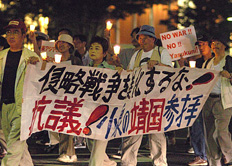 日本首相小泉訪問渥太華期間,9個反戰團體6月28日在溫哥華日本領事館門前示威抗議,高呼反戰口號,要求日本政府正視二戰歷史,終止修改憲法第九條。抗議團體的代表向日本領事館遞交了一封給小泉的公開信,指摘小泉參拜靖國神社傷害東亞鄰國的和平友好關系,并違反“舊金山條約”....<全文>