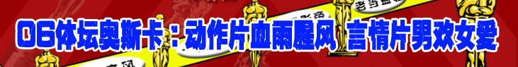 最佳紀錄片:退役明星《王的男人》 最佳影片:退役明星《王的男人》 終身成就獎:退役明星 頒獎詞:當2006年的秒針走向最后一刻時,在我們記憶里揮不去的是那些王者的背影。“車王”舒馬赫將風中的紅色身影收起,“球王”齊達內停下曼妙的舞步,網球之王阿加西最后一次把親吻獻給觀眾,“大腳王子”索普再也劈不開綠池的碧波……再見了,我們的王者、我們的神,我們會懷念那些你們帶來的難忘歲月,深鎖住你們鑄就的傳奇故事。就算是卡特里娜颶風也帶不走腦中的思緒,就算是印度洋海嘯也沖不掉心中的悸動。 在新年的鐘聲敲響時,讓我們帶著崇敬的心情向那些曾給我們無數感動的人道別:再見了,王者! |