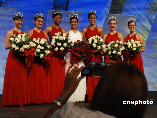 美國第九十屆玫瑰皇后和公主的加冕儀式,十月二十五日在巴沙迪那玫瑰宮舉行。高中十七歲少女吉布斯喜戴由鉆石珍珠裝飾的價值十萬美元皇冠,六名少女各頭戴價值四萬五千美元的公主冠。她們將在2008年元旦第一百一十九屆玫瑰花車游行時,喜迎北京奧運花車。美國一百多年來的玫瑰公主選拔超脫于選美活動,在于注重少女的社區活動和學業成績以及演講能力,推崇標準的清純“鄰家女孩”。中新社發 賈國榮 攝