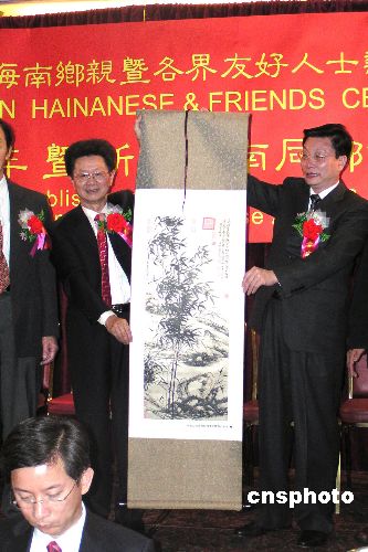 中國國務(wù)院僑務(wù)辦公室副主任馬儒沛十一月四日代表國僑辦向歡度五十周年華誕的澳大利亞新州海南同鄉(xiāng)會贈送禮品。中新社發(fā) 葛明 攝