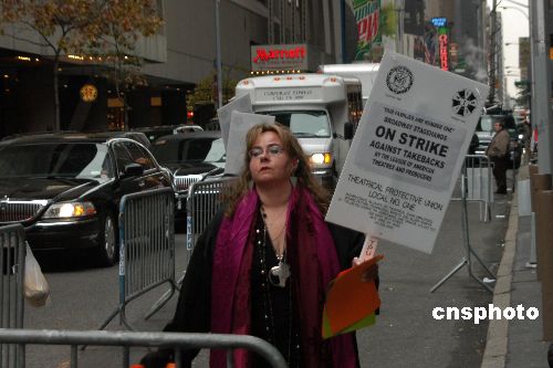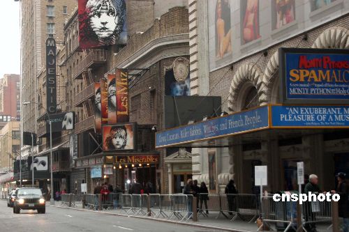 當地時間十一月十二日的紐約百老匯街在罷工中榮景不再、一片蕭條。紐約舞臺工作人員工會與舞臺劇制作人聯盟之間的談判至周一仍然處于僵持狀態,舞臺工作人員繼續罷工,目前罷工抗議活動已經進入第三天,這使百老匯包括《獅子王》、《歌劇魅影》等在內的27個舞臺劇被迫停演。罷工導致每日損失在一千七百萬美元以上。中新社發 劉小青 攝
