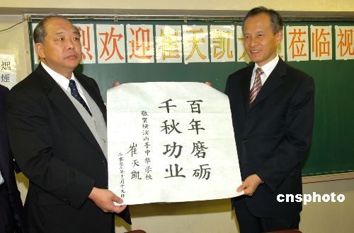 11月19日上午,上任伊始的中國駐日大使崔天凱專程來到日本橫濱山手中華學校,看望這座具有百年歷史的僑校師生,中國駐日使館公使孔鉉佑、中國駐日使館總領事于淑媛陪同。崔天凱大使一行受到該校師生的熱烈歡迎。中新社發 滕劍峰 攝