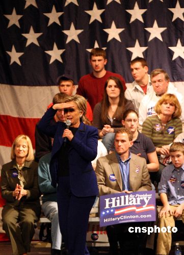 1月7日,美國民主黨總統(tǒng)競選人希拉里在新罕布什爾州的沙倫市進行該州初選前最后的競選活動。希拉里此前在艾奧瓦州初選落敗,目前在新州民調(diào)亦處于落后,競選形勢不容樂觀。中新社發(fā) 李靜 攝