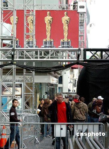 當(dāng)?shù)貢r(shí)間二月二十一日,美國洛杉磯好萊塢星光大道已經(jīng)封鎖主要道路,為二月二十四日舉行美國第八十屆電影奧斯卡頒獎(jiǎng)典禮作準(zhǔn)備。中新社發(fā) 賈國榮 攝