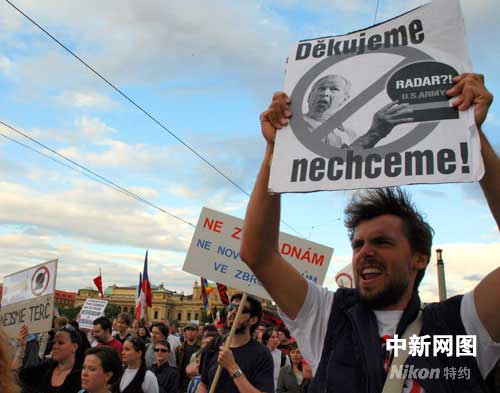 數千捷克民眾8日傍晚在布拉格舉行示威游行,抗議政府簽約同意美國在捷克建立反導雷達基地。集會游行舉行前3小時,美國國務卿賴斯和捷克外交部長施瓦岑貝格在布拉格簽署了捷美兩國政府關于美國在捷克建立反導雷達基地的主協定。協定尚待捷克議會批準才能生效。黃頻 攝影