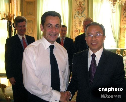 法國(guó)總統(tǒng)薩科齊七日會(huì)見(jiàn)了正在巴黎訪問(wèn)的中國(guó)國(guó)務(wù)委員戴秉國(guó)。薩科齊表示,愿以即將召開(kāi)的第七屆亞歐首腦會(huì)議和第十一次歐中領(lǐng)導(dǎo)人會(huì)晤為契機(jī),將法中和歐中全面戰(zhàn)略伙伴關(guān)系推向更高水平。中新社發(fā) 法芬 攝