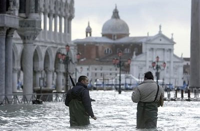 12月1日,由于海水上升,威尼斯城幾乎所有街道都被海水淹沒,圣馬可廣場上的水深達(dá)80厘米。威尼斯當(dāng)局發(fā)出警報(bào),稱海水可能要比正常水位上升1.6米,水城威尼斯真的變成了“水城”。