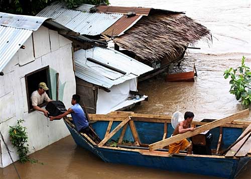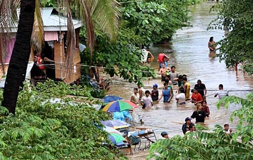 菲律賓南部暴雨引發洪水,約5千家庭受到影響,1月3日,大批居民撤離受災地區,被轉移到安全地帶。
