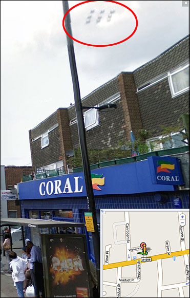 據英國媒體30日報道,世界最大搜索引擎谷歌的“街景”工具,竟在大白天拍到成群結隊的“UFO”。據悉這些半球形的神秘物體盤旋在英國倫敦東部的街道上空,久久不曾離去。