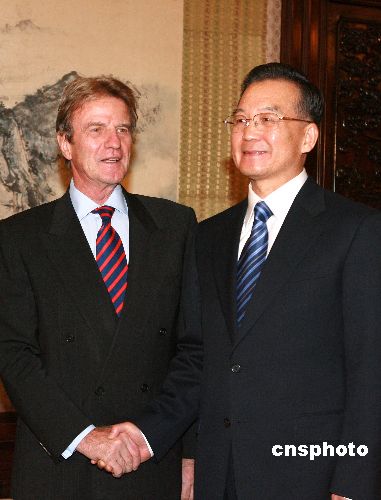 十月三十一日,中國國務(wù)院總理溫家寶在北京會(huì)見法國外交部部長貝爾納·庫什內(nèi)。中新社發(fā) 廖文靜 攝