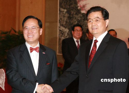 十一月二十三日,國(guó)家主席胡錦濤在北京會(huì)見來京述職的香港特別行政區(qū)行政長(zhǎng)官曾蔭權(quán)。中新社發(fā) 廖文靜 攝