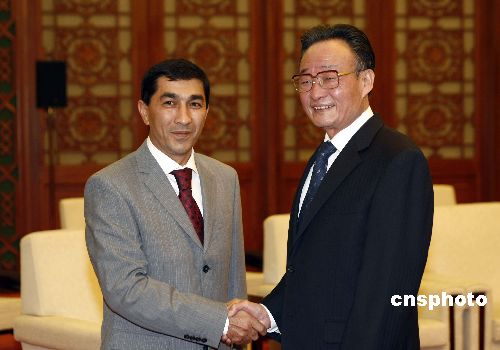 十一月二十三日,全國人大常委會委員長吳邦國在北京人民大會堂會見來訪的烏茲別克斯坦最高會議立法院副主席沙特莫諾夫。中新社發 盛佳鵬 攝
