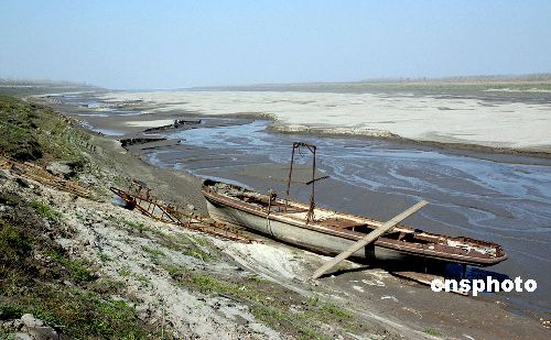 11月7日,一條船擱淺在黃石市牯牛洲的長江沙灘上。由于今年雨水少,長江黃石段水位下降嚴重,西塞山以下江面凸現大面積沙灘,長江航運及居民用水影響嚴重。據市水文水資源勘測局技術人員介紹,目前長江黃石段水位是11.51米,比去年同期低1.6米,是近二十年來的最低點。交通部長江航務管理局6日宣布長江中游因枯水形勢嚴峻進入二級橙色預警狀態,長江黃石段許多水面露出了淺灘。中新社發 邱孝威 攝