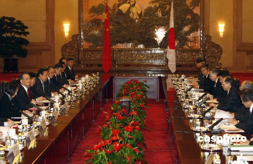 十二月二十八日,中國國務(wù)院總理溫家寶在北京人民大會堂與來訪的日本首相福田康夫舉行會談。中新社發(fā) 盛佳鵬 攝