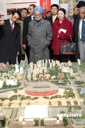 1月13日,印度總理辛格來到北京市“2008”工程展示中心,參觀2008年北京奧運會場館建設。這是辛格擔任印度總理以來首次訪問中國,也是時隔五年后印度總理再次來訪。中新社發 盛佳鵬 攝
