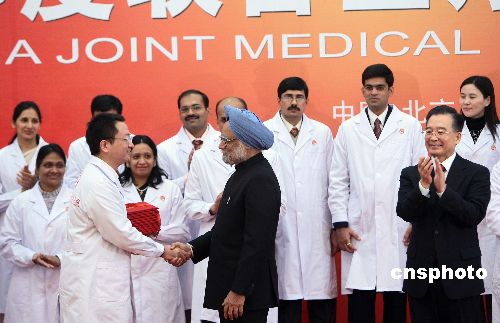 溫家寶與辛格出席中印聯合醫療隊成立儀式