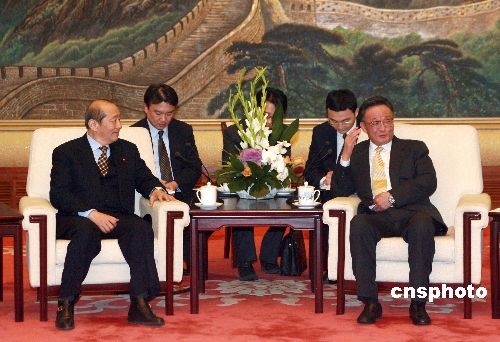 二月二十日,中國全國人大常委會委員長吳邦國在北京人民大會堂會見由參議院議員大石正光率領(lǐng)的日本國會參議院代表團(tuán)。中新社發(fā) 廖文靜 攝